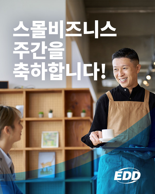 💼 #스몰비즈니스주간을 축하합니다! 캘리포니아에서 스몰비즈니스가 수행하는 중요한 역할에 자부심을 느낍니다. 스몰비즈니스는 우리 경제를 지탱하고 지역 사회의 성장을 돕고 있습니다. @Employment Development Department는 여러분이 급여세와 인력 서비스 관련 업무를 원활히 처리할 수 있도록 지원하여, 여러분이 꿈을 실현하는 데 전념할 수 있도록 돕습니다. 👉 간편한 비즈니스 운영: edd.ca.gov/SmallBiz |