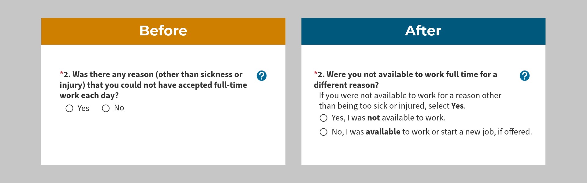 - Informational text was added under the question to provide more help.