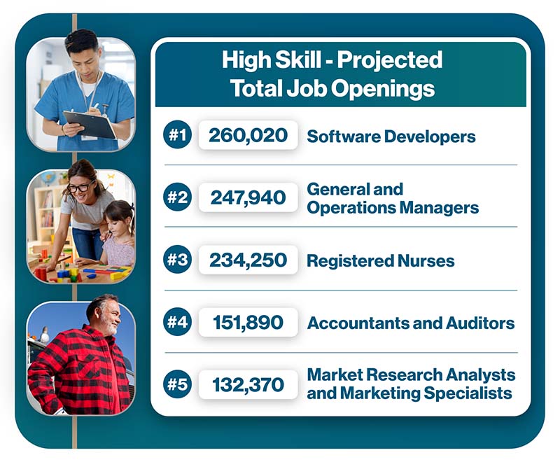 If you are starting a new career or making a switch, understanding the most in-demand jobs is key. Beyond knowing the top roles, it’s essential to consider the education requirements and median pay for each. Based on projections for 2020-2030, we've highlighted the top five jobs in California's 15 economic regions.